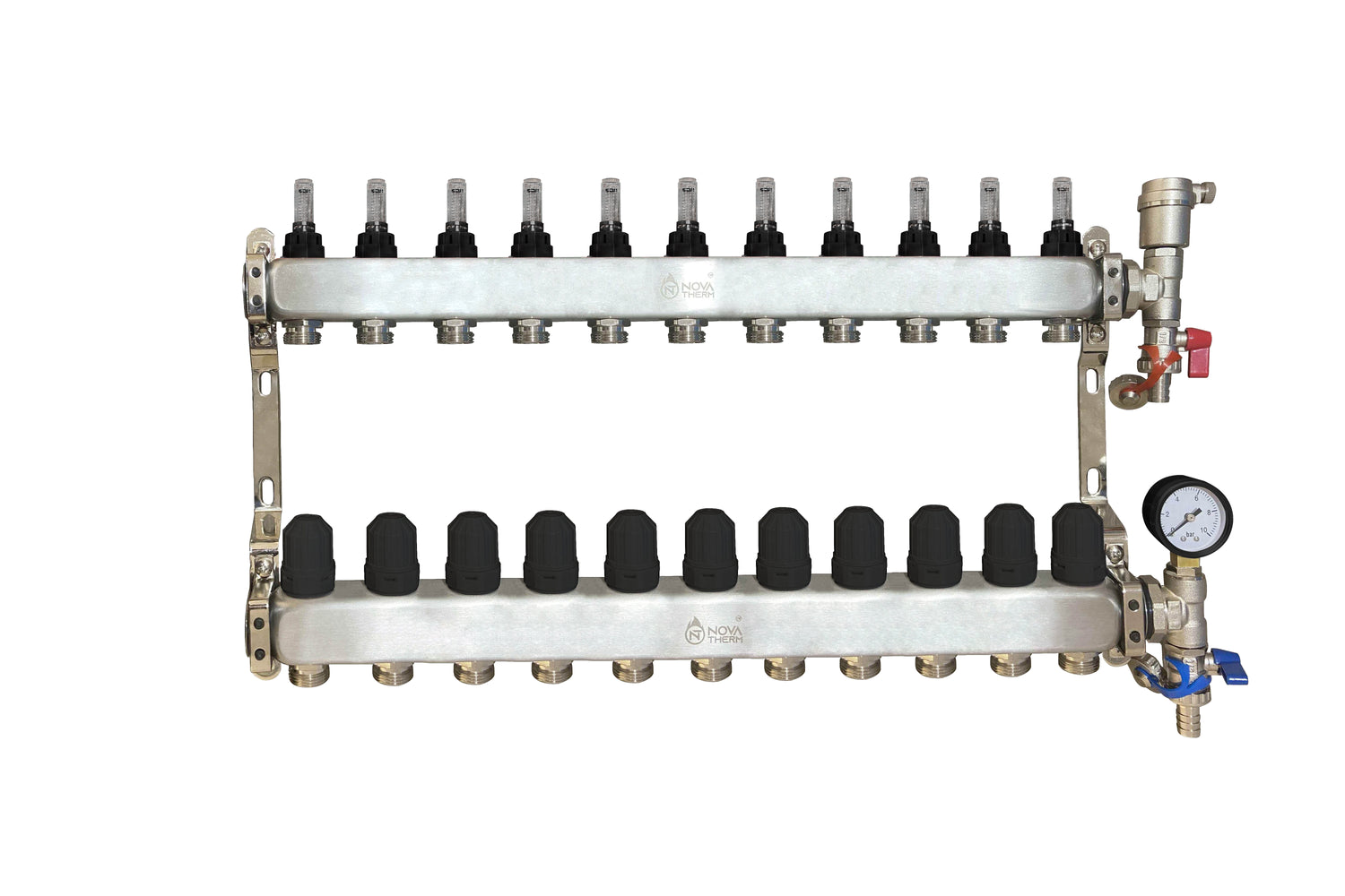 NovaTherm 11 Port Dualmix Stainless Steel Manifold Assembly inc Pressure Gauge and Air Vent